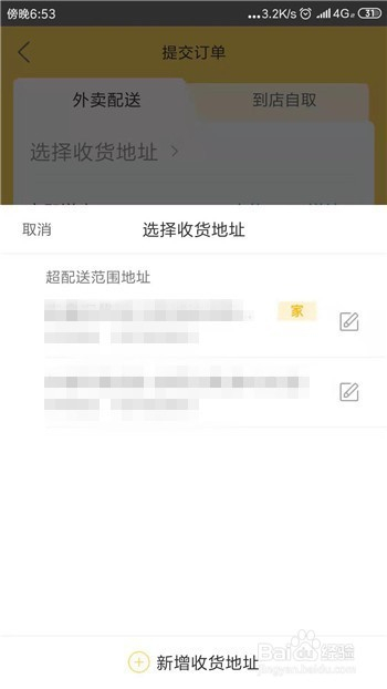 下面需要选择收货地址,若是之前点过会有默认地址。
