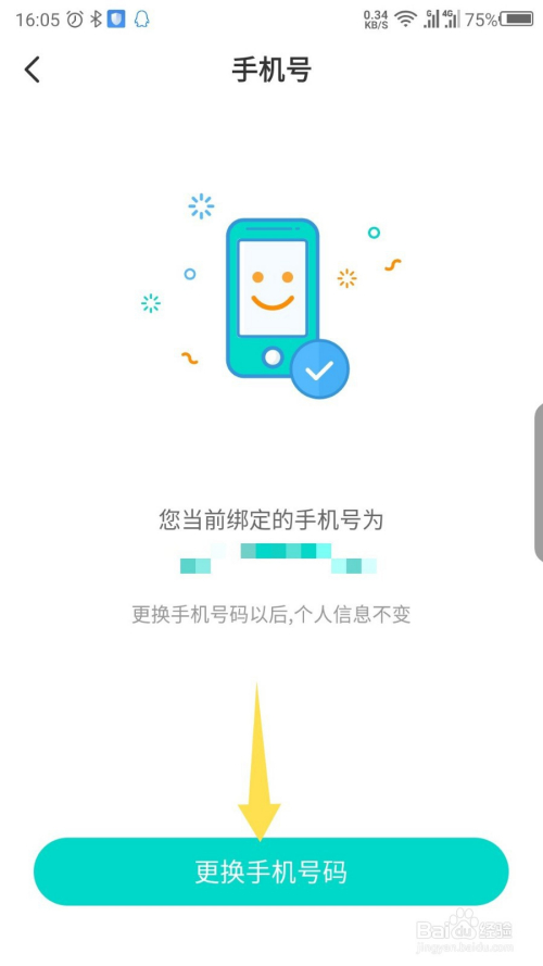 就打开了手机号界面,点击底部的改换手机号码。如图所示
