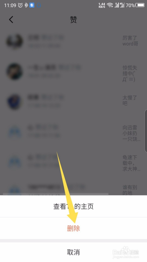 手机迅雷怎么删除动态页面的赞和评论