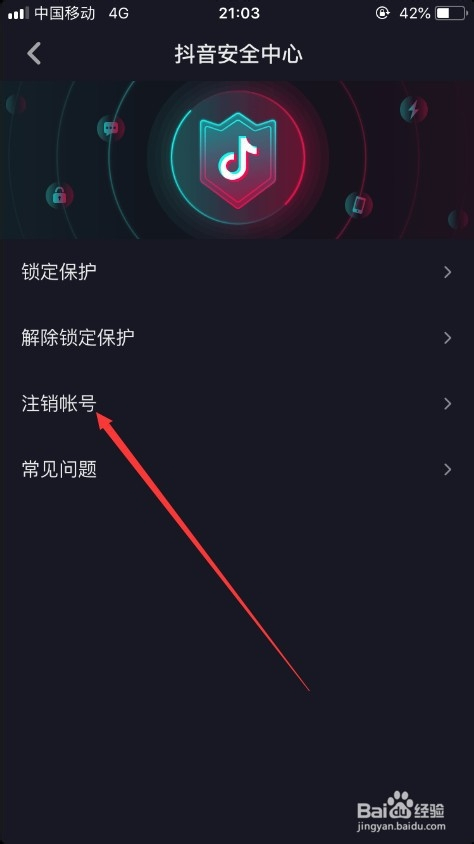 进入帐号与平安设置之后,选择最下面的“抖音平安中间”,如图所示。