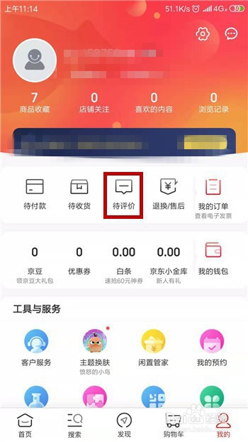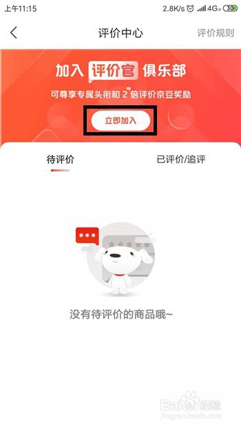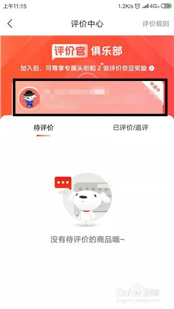 在京东的小我中间界面的账号下方找到【待评价】功能并点击。