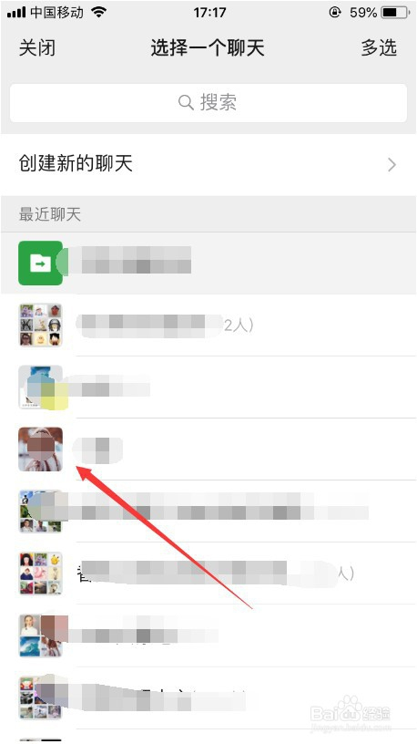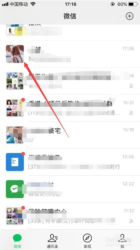 首先,打开并登录微信之后,进入微信的聊天列表(或者通信录)找到要保举的老友,点击进入,如图所示。