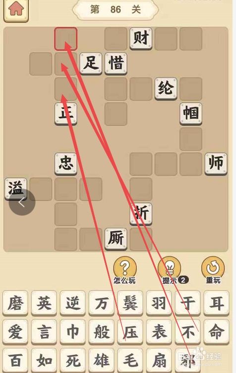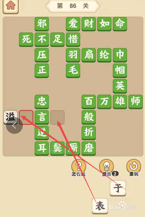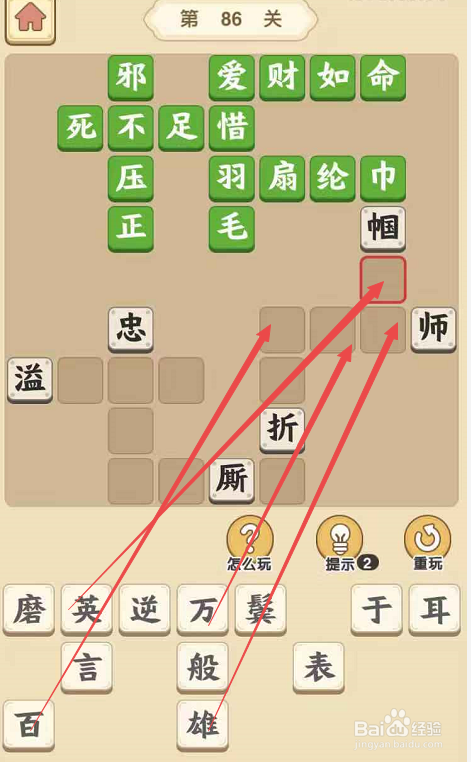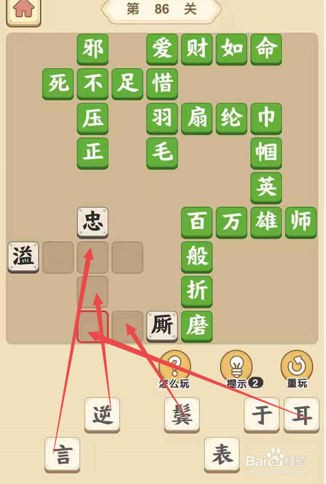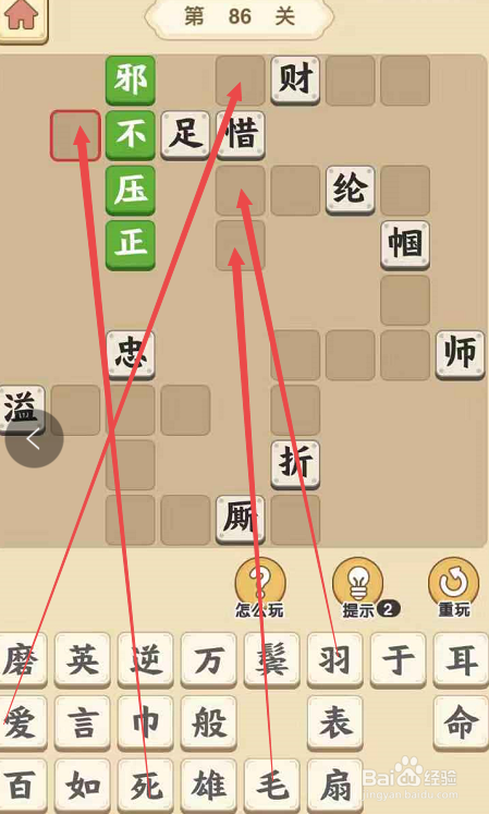 点击当作语小秀才手游第八十六关,起头挑战。在这一挑战页面内,点击“邪”字填在“正”字为结从头至尾的当作语的第一个空格处,再将“不”填在“邪”下面,将“压”填在“不”下面,和“正”一路构成“邪不压正”。