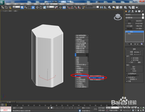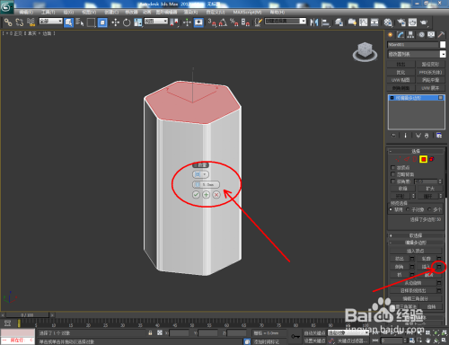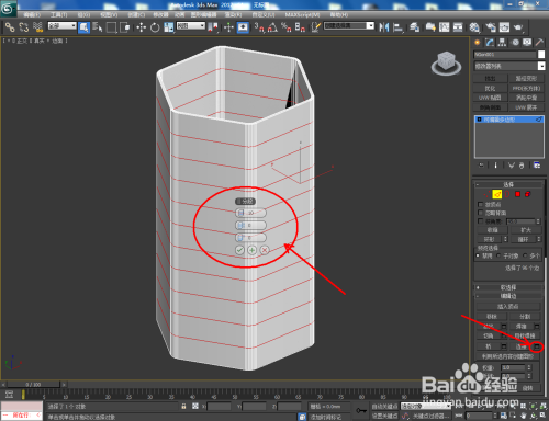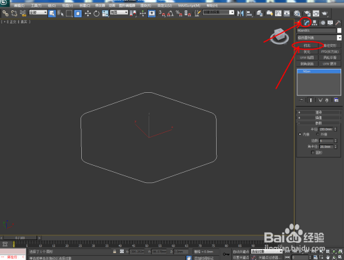 选中图案,点击【点窜】-【挤出】,按图示设置好挤出的各个参数,建造出一个六边形柱体模子。选中模子,点击鼠标右键-【转换为】-【转换为可编纂多边形】;