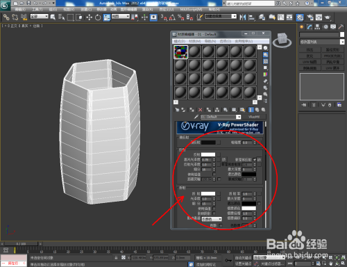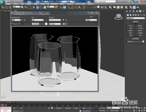 选中模子,点击【点窜】-【FFD长方体】,鼠标点击右边工作区中的【节制点】后,框选图示模子上的节制点并对节制点进行缩放操作。点击【材质编纂器】按图示参数设置一个玻璃材质球并附加给模子后,点击【衬着】将建造好的六边形玻璃瓶模子衬着出图即可。