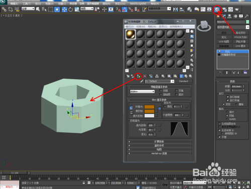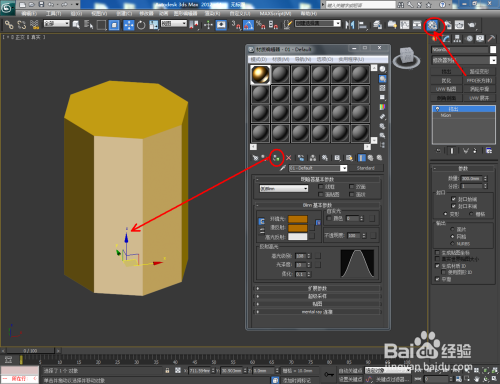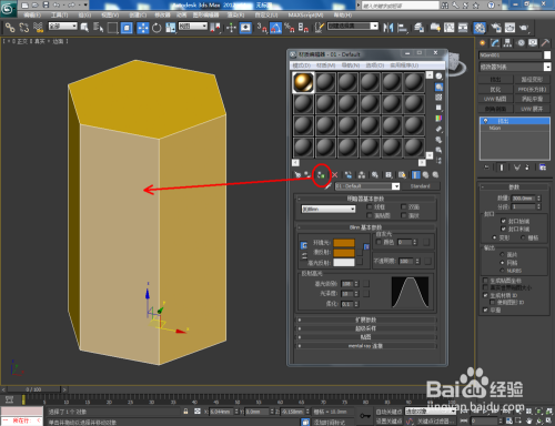 选中八边形图案,点击【点窜】-【挤出】,挤出数目设置为:300,完当作八边形模子的建造。选中模子,点击【材质编纂器】,为模子附加一个金属材质球(如图所示);