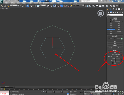 打开3Dmax2012软件,点击【建立】-【图形】-【多边形】,将右边工作区中的多边形半径参数设置为:100,边数设置为:6并勾选【内接】,绘制出一个六边形图案。点击【对象颜色】将图案的对象颜色设置为:白色(如图所示);