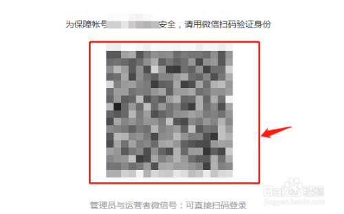 在点击登岸之后会弹出“为保障帐号平安,请用微信扫码验证身份”的一个码,先用办理员号扫描登岸进入;