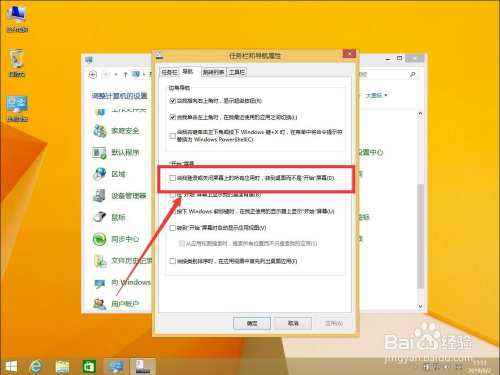 勾选上“当我登录或封闭屏幕上的所有应用时,转到桌面而不是开始菜单”