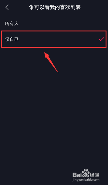 进入谁可以看我的喜好列表页面,点击【仅本身】就可以设置只有本身可以查看喜好的视频。