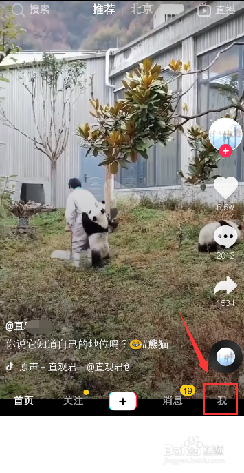 手机打开【抖音短视频】进入首页后,点击下方的“我”。