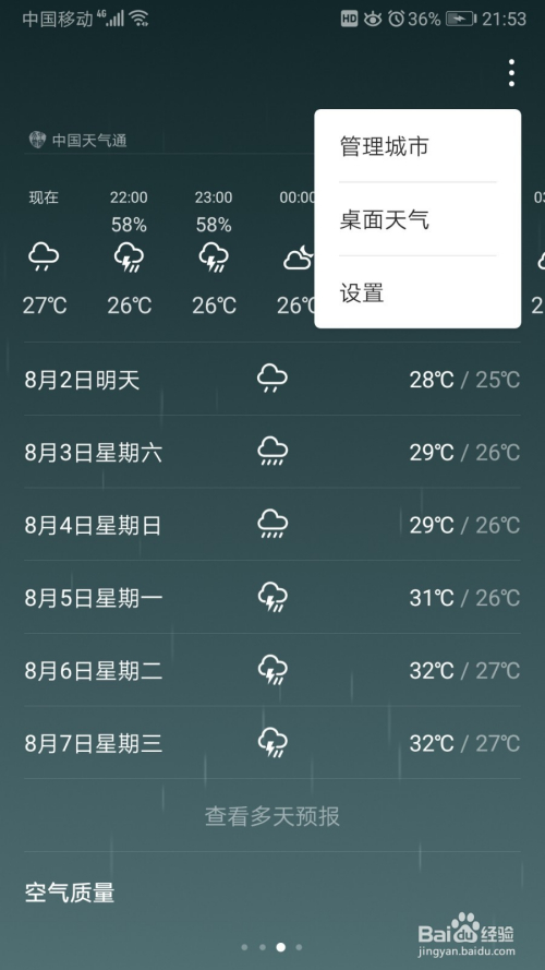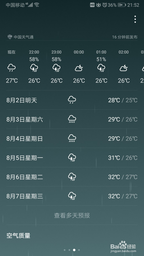 正常的手机桌面上的气候是这样的,点击之后就会呈现比来几天的气候预告。