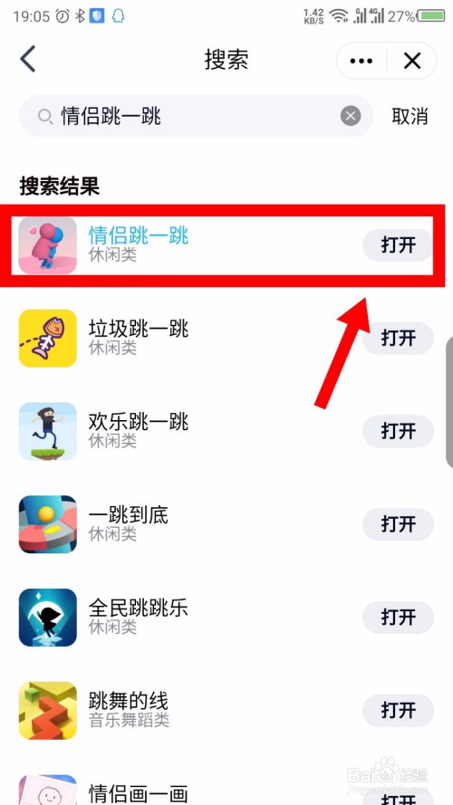 鄙人面的搜刮成果中,能看到游戏情侣跳一跳,点击打开。如图所示