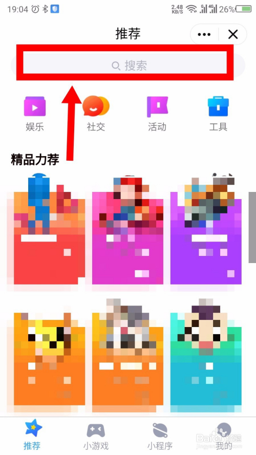 点击搜索框后,在上面输入情侣跳一跳,搜刮一下。如图所示
