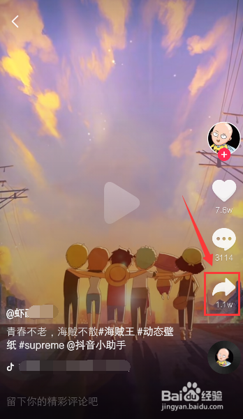 手机点击打开【抖音短视频】打开你要设置动态壁纸的视频,再点击视频的分享箭头,如图所示。