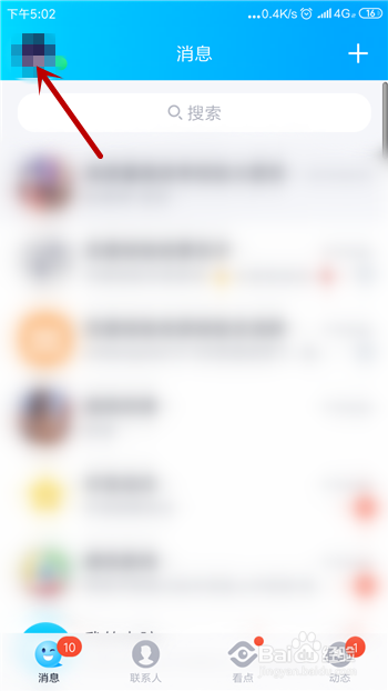 在手机QQ中我们需要在动静界面中点击左上角的QQ头像。