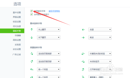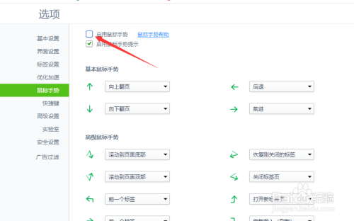 想要封闭该功能,只要把上面的“启用鼠标手势”前面的复选框去失落勾选就可以了,如图所示。