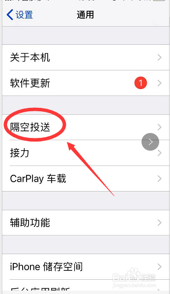 在通用设置界面,点击隔空投送,起头设置隔空投送功能