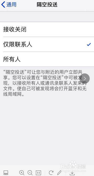 若是打开该功能,在给老友分享文件时,就会呈现 隔空投送老友的图标,不然就不会呈现。