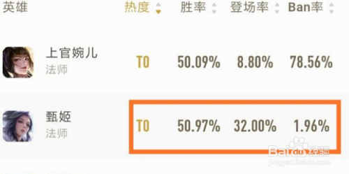 热度为T0级别,胜率为50.97%,登场率为32%,Ban率为1.96%,可以说甄姬之所以人气高估量也就是低端局有太多玩家来利用这个英雄了吧!而且这登场率也是让此外法师英雄情何故堪呢!
