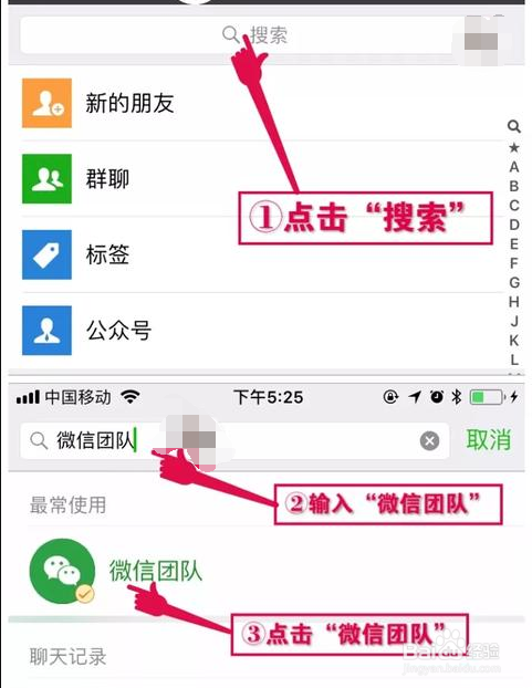 您的实名认证老友打开微信之后,点击最上面的搜刮,输入“微信团队”点击搜刮。