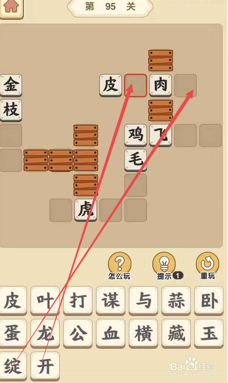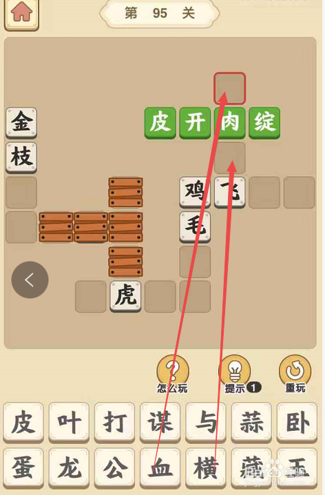 点击当作语小秀才手游第九十五关,起头挑战。将“开”填在“皮”后面,将“绽”填在“肉”后面,构成当作语“鳞伤遍体”。此外,这个当作语填好之后还可以断根“肉”字上下的障碍。