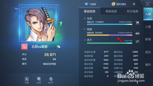回到游戏本家儿界面点击小我头像,可看到大量经验转化为人物经验。