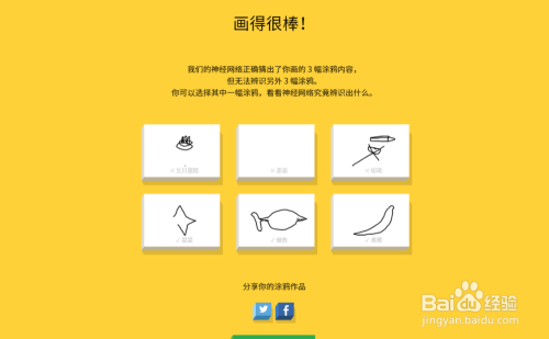 我们先随便画6个涂鸦让人工智能识别一下,如图进行涂鸦即可,注重:每局只有20秒,抓紧时候哦!