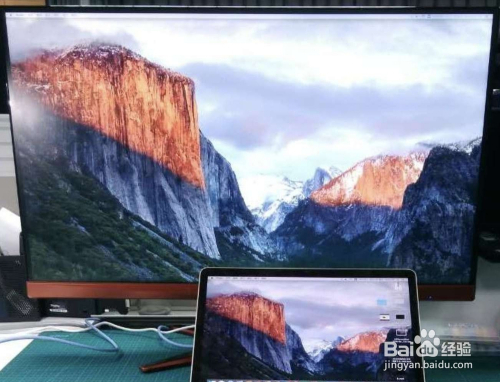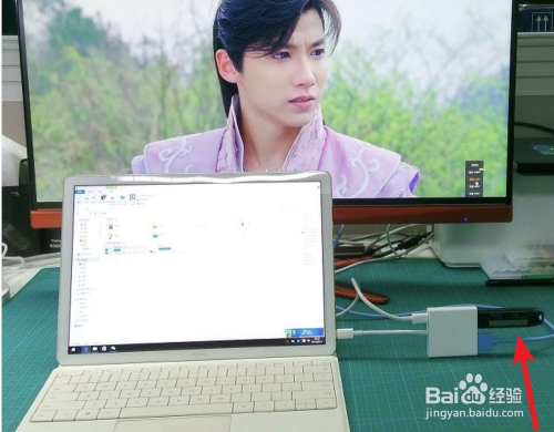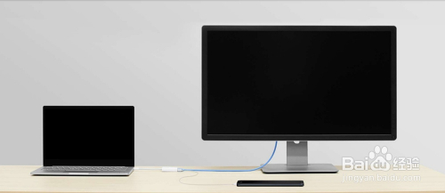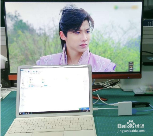 然后把笔记本打开,转接器出口一头接入HDMI线,然后与显示器毗连上。