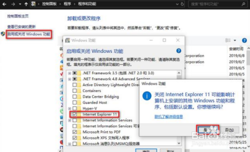 若是你想在Win10上除去IE浏览器,可直接在节制面板-程序和功能-启用或封闭Windows功能中,将Internet Explorer 11去失落勾选,并按要求重启电脑即可。当然了,卸载IE可能会影响到你的默认打开体例或者其他程序的设定等等。我认为的话保留它也并不会影响到你的任何操作吧。
