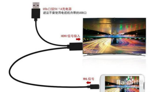 MHL线的HDMI接头毗连到电视的HDMI接口,USB充电接头毗连到手机充电器,数据线接头毗连到手机的从头至尾插,这样就可以将手机屏幕投屏到电视了,毗连体例如下图所示▼。