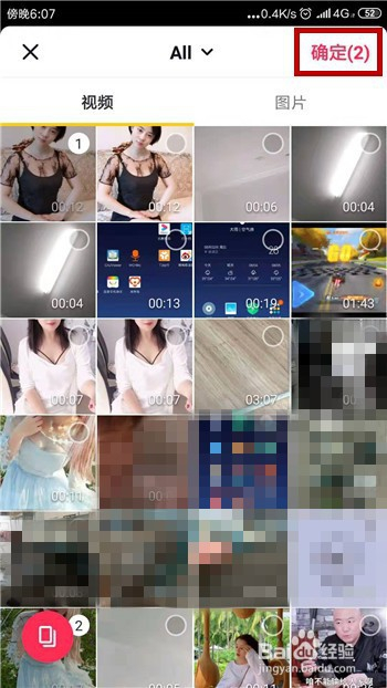 点击之后就可以选择想要拼接的多个视频,选好后点击右上角的【确定】。
