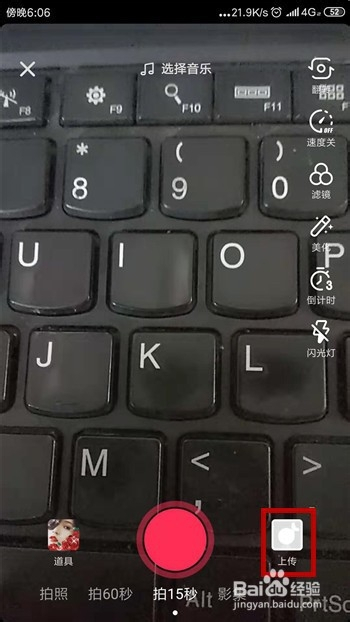 然后在视频的录制界面中点击右下角的【上传】功能。