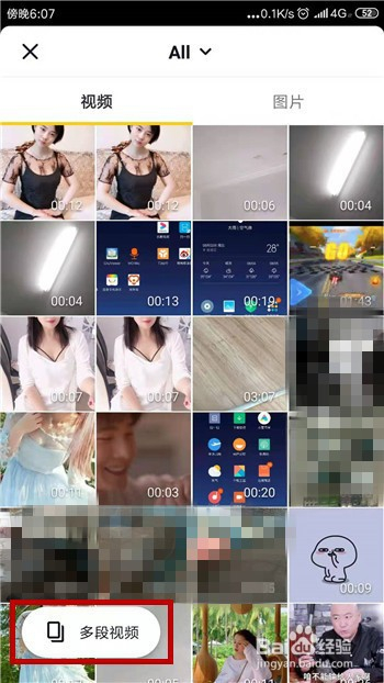 接下来会打开相册里的视频,在左下角点击【多段视频】。