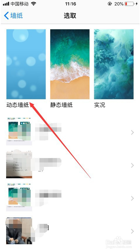 然后就可以看到动态墙纸和静态墙纸两种,我们选择动态墙纸,如图所示。