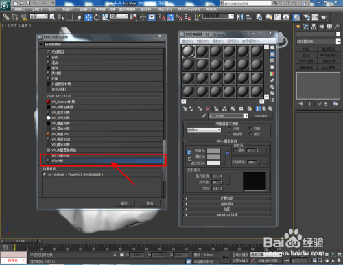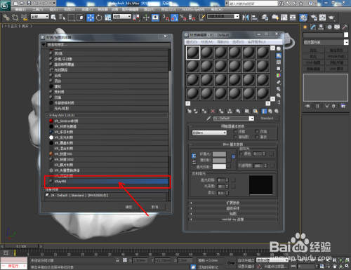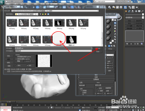 添加贴图的材质编纂器设置。点击【材质编纂器】,弹出材质编纂器设置框,点击【standard】-【VAryMlt】设置一个Vary材质球。点击图示方框-【位图】,选择我们已经找好的石膏图片,点击【打开】将贴图添加进来(如图所示);