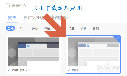 在皮肤中间对话框,我们可以看到今朝是系统默认的皮肤,需要更改也很简单,点击其他肆意皮肤然后下载后即可主动应用;