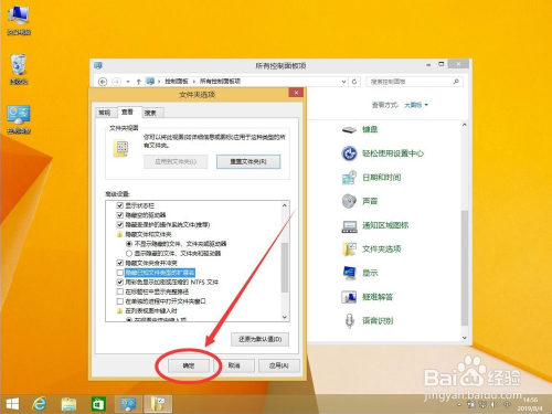 在高级设置中,找到“埋没已知文件类型的扩展名”,打消前面的勾选
