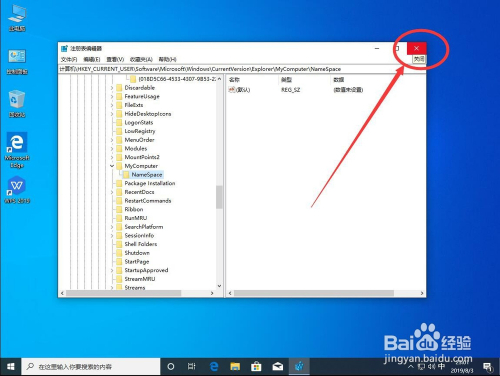点击右上角的红色叉号,封闭注册表编纂器