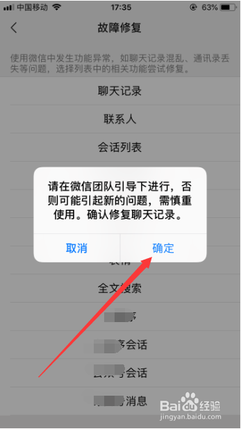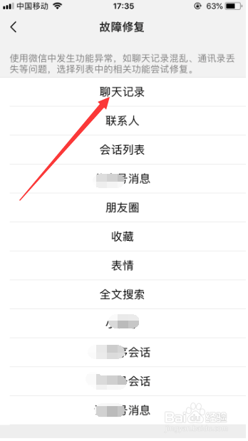进入故障修复功能之后,选择此中的“聊天记实”,发生聊天记实的丢掉等问题都可以进行修复,如图所示。