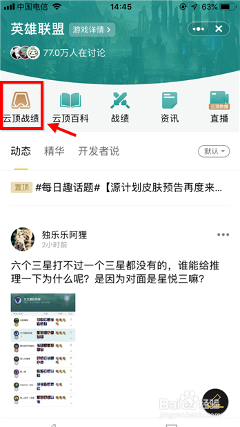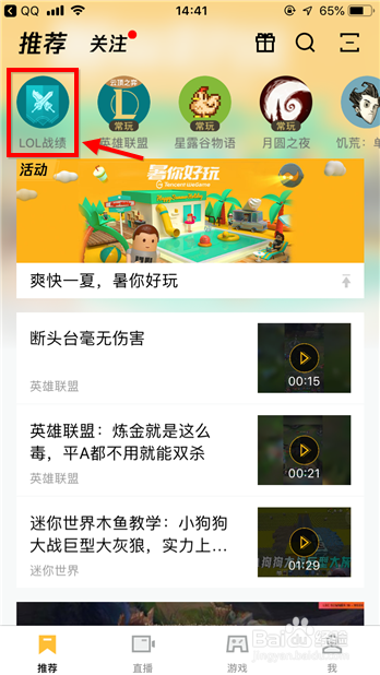 方式1 查询云顶之弈战绩方式有两种,首先可在本家儿界面点击“lol战绩”。