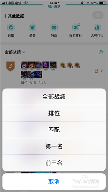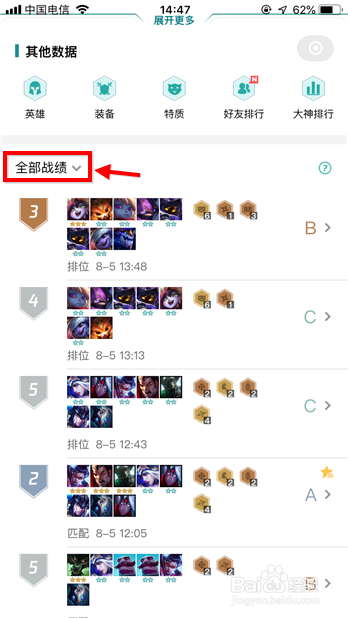 lol云顶之弈怎么看战绩?在“全数战绩”那栏点一下,还可以对战绩进行筛选。