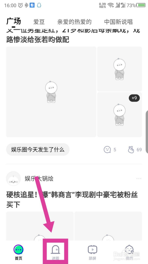 打开泡泡后,点击底部的圈子。如图所示