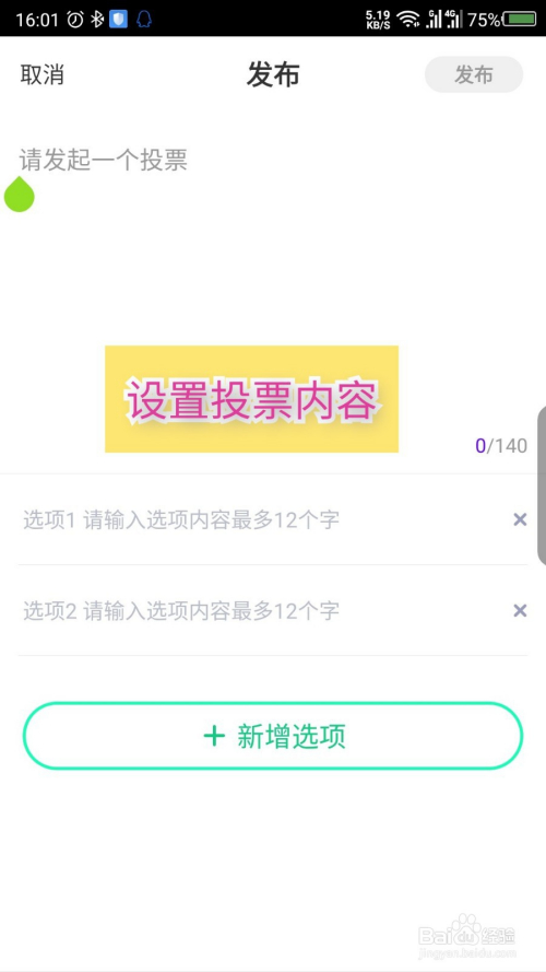 打开投票界面后,设置投票内容。如图所示