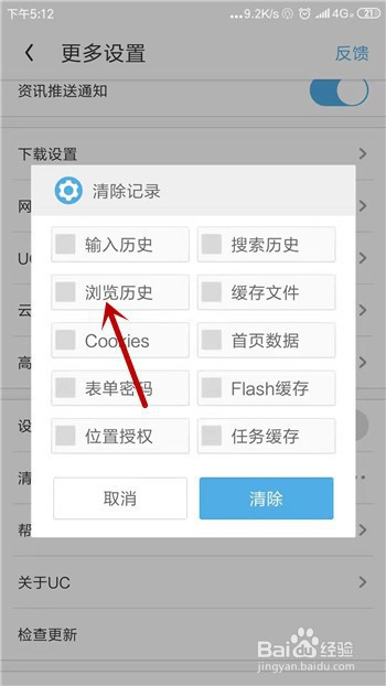 断根记实中有良多的选择,勾选上我们需要断根的【浏览汗青】。