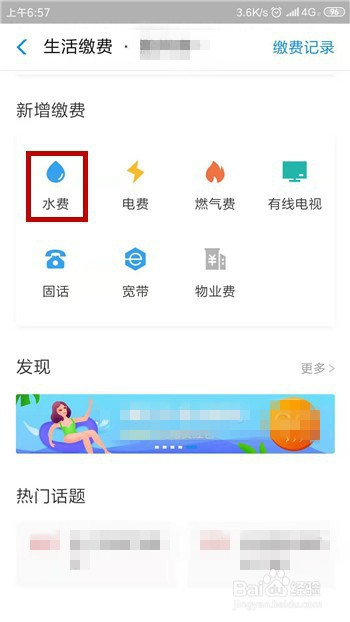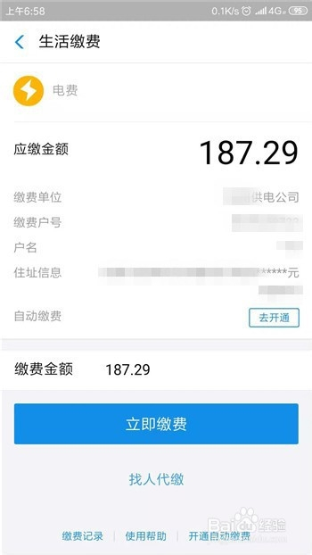在糊口缴费中可看到船脚、电费及燃气费,点击打开一个,好比船脚。