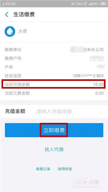 添加好缴费账户后即可打开,在这里可看到余额以及欠费金额,若是想要缴费只需要点击【当即缴费】即可。