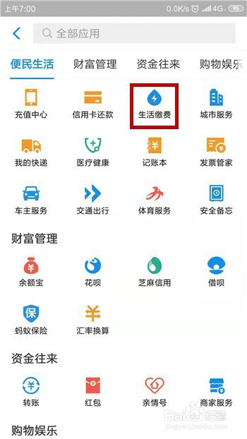然后在应用界面中找到分类【便平易近办事】,鄙人方点击【糊口缴费】。