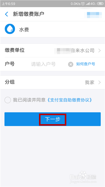 选择好后接下来就是添加户号及姓名了,填好后点击【下一步】选项。