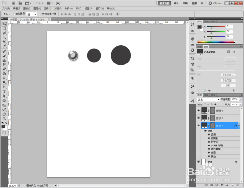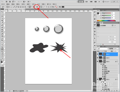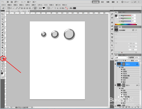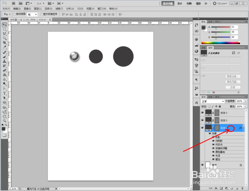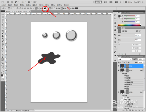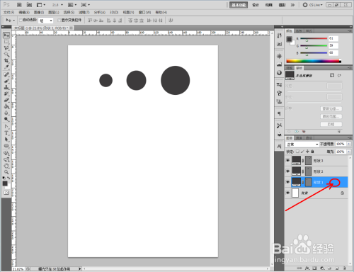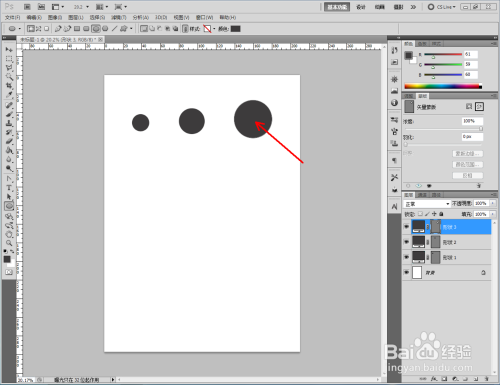 点击【卵形图案东西】,将前景色设置为黑色后,在作图区域绘制三个大小分歧的圆形图案(如图所示);